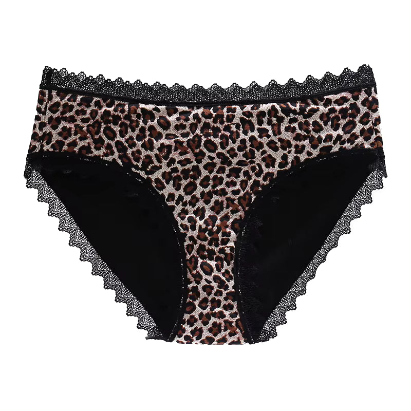 Leopardikuvioiset pitsialushousut kuukautisaikaan